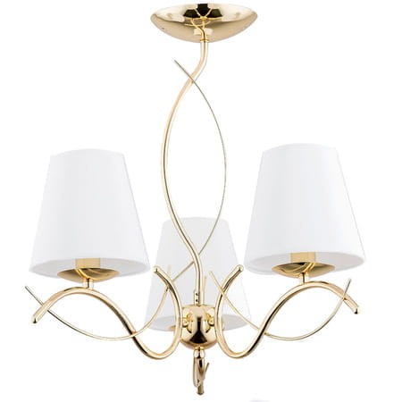 Klasyczna lampa na złotym stelażu. Szykowna lampa idealna do zawieszenia w sypialni lub salonie. Starannie wykonany przez polskiego producenta stelaż w kolorze złotym znakomicie prezentuje się w klasycznych wnętrzach.