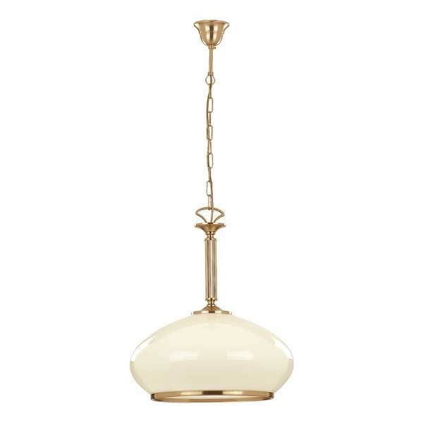 Klasyczna pojedyncza lampa z kloszem. Klasyczna pojedyncza lampa wisząca idealna jako klasyczny dodatek oświetleniowy w tradycyjnych aranżacjach. Piękny szklany klosz zamocowany na patynowym stelażu.