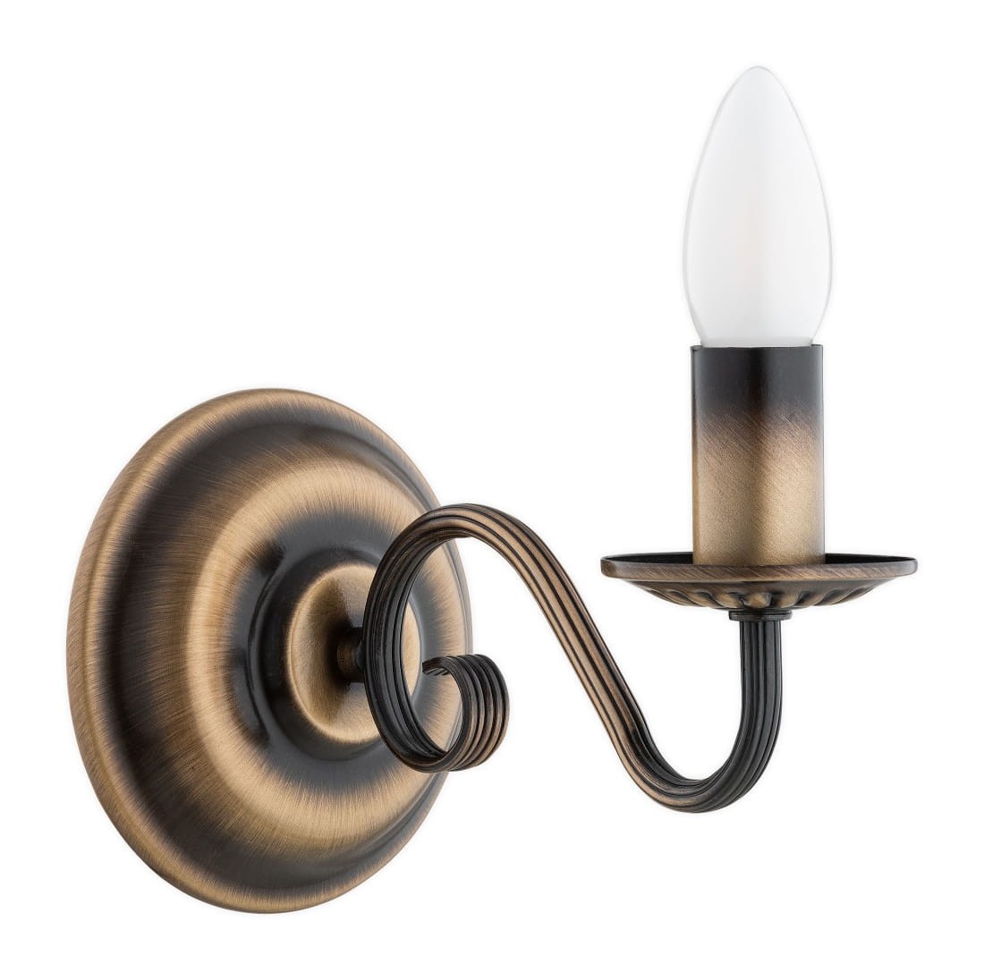 Klasyczny kinkiet patynowy VELOTE to elegancka lampa ścienna, świetnie pasująca do korytarzy, salonów lub sypialni. Jest idealną propozycją do wnętrz klasycznych. Dla lepszego efektu zaleca się użycie żarówki w kształcie płomyka.