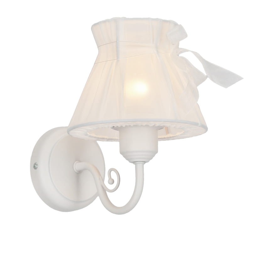 Klasyczny kinkiet ścienny z abażurkiem. Wykonany w prostym klasycznym stylu kinkiet ścienny dedykowany praktycznie każdym wnętrzom. Wprowadzi do pomieszczenia delikatne światło. Dodatkową ozdobą kinkiet jest piękna kokardka.