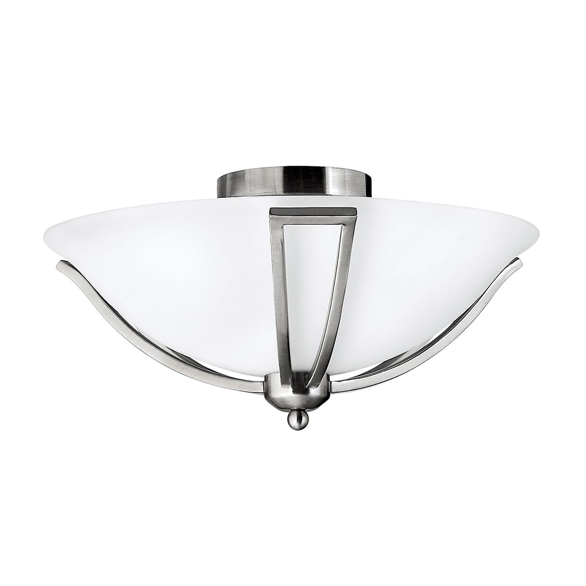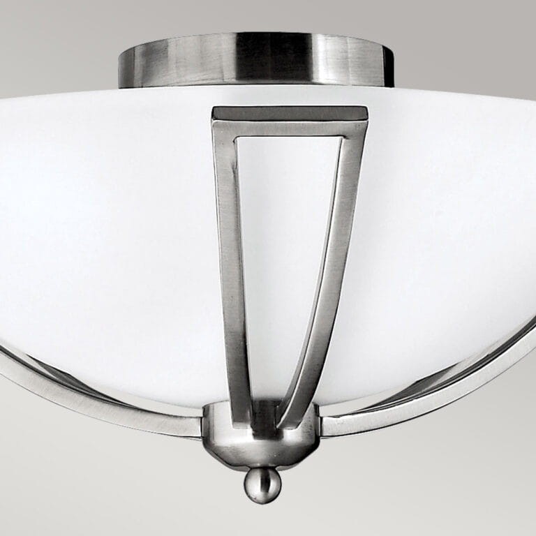 Klasyczny plafon sufitowy srebrny ze szklanym kloszem. Plafon dzięki szklanemu kloszowi zapewnia równomierne oświetlenie, które nie oślepia ale pięknie rozprasza światło w pomieszczeniu. Jest to również świetne rozwiązanie dla osób poszukujących oświetlenia, które nie zajmuje zbyt wiele miejsca na suficie, ale nadal zapewnia odpowiednią ilość światła. Plafon idealnie wpisuje się w styl klasyczny. Szklany klosz i zdobienia w kolorze szczotkowanego niklu pięknie dopełniają wnętrze.