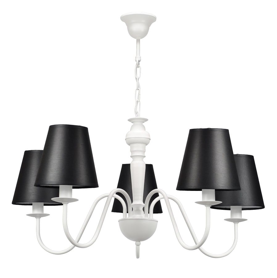 Klasyczny żyrandol do pokoju w ponadczasowej czarno- białej odsłonie. Lampa wisząca na pięknym, delikatnym stelażu ze zgrabnymi abażurkami z tkaniny- wyjątkowo efektowna, starannie wykonana przez polskiego producenta. GOLDSUN to jeden z naszych najpiękniejszych modeli żyrandoli, zadowoli gusta najbardziej wymagających klientów.