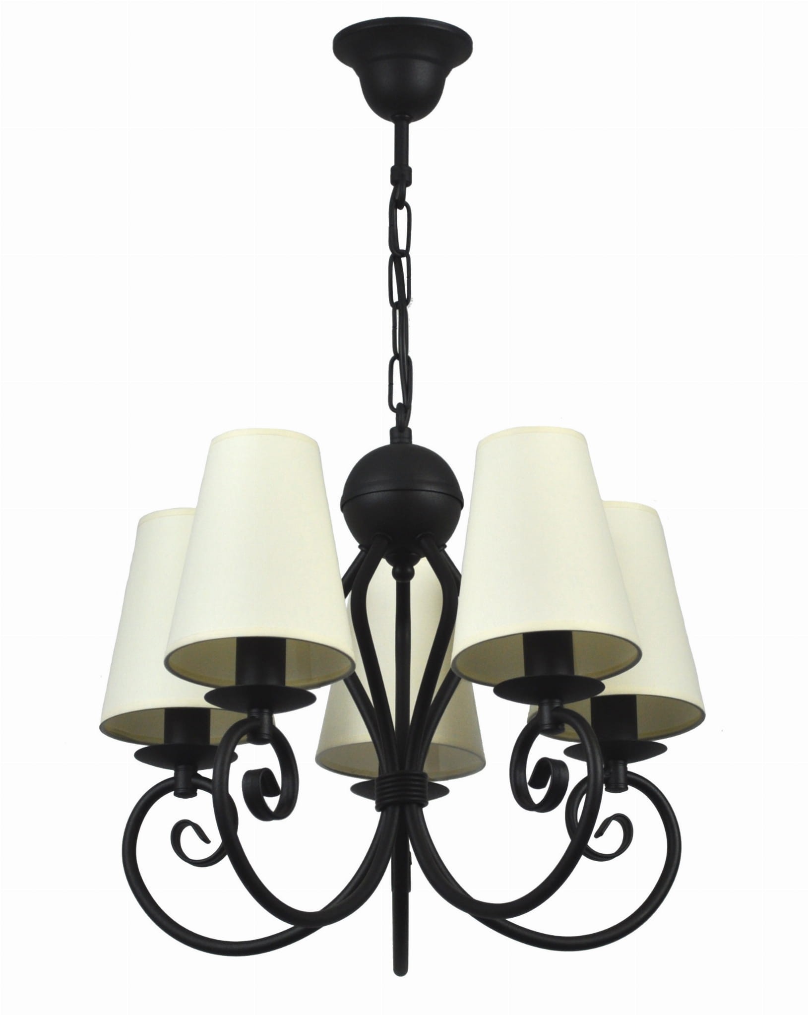 Ten kremowo czarny żyrandol z abażurkami będzie prawdziwą ozdobą Twojego pokoju lub sypialni. Dodatkowo żyrandol ma możliwość wymiany abażurków na inny kolor.