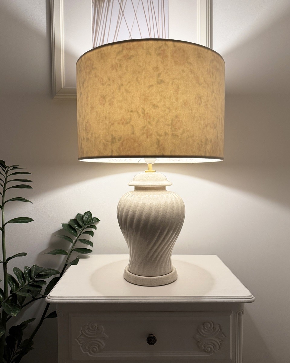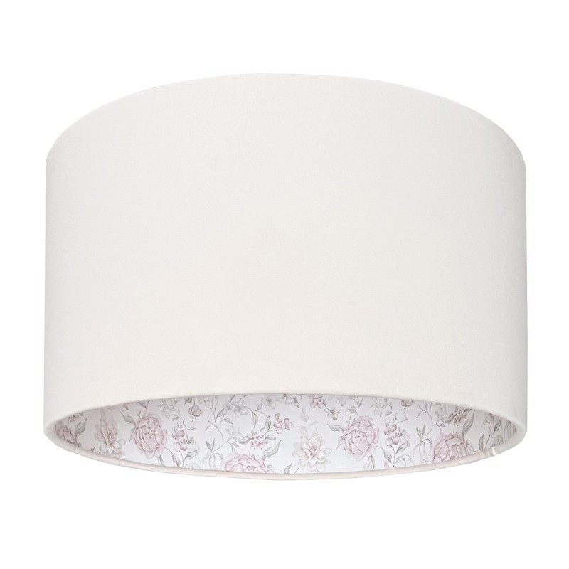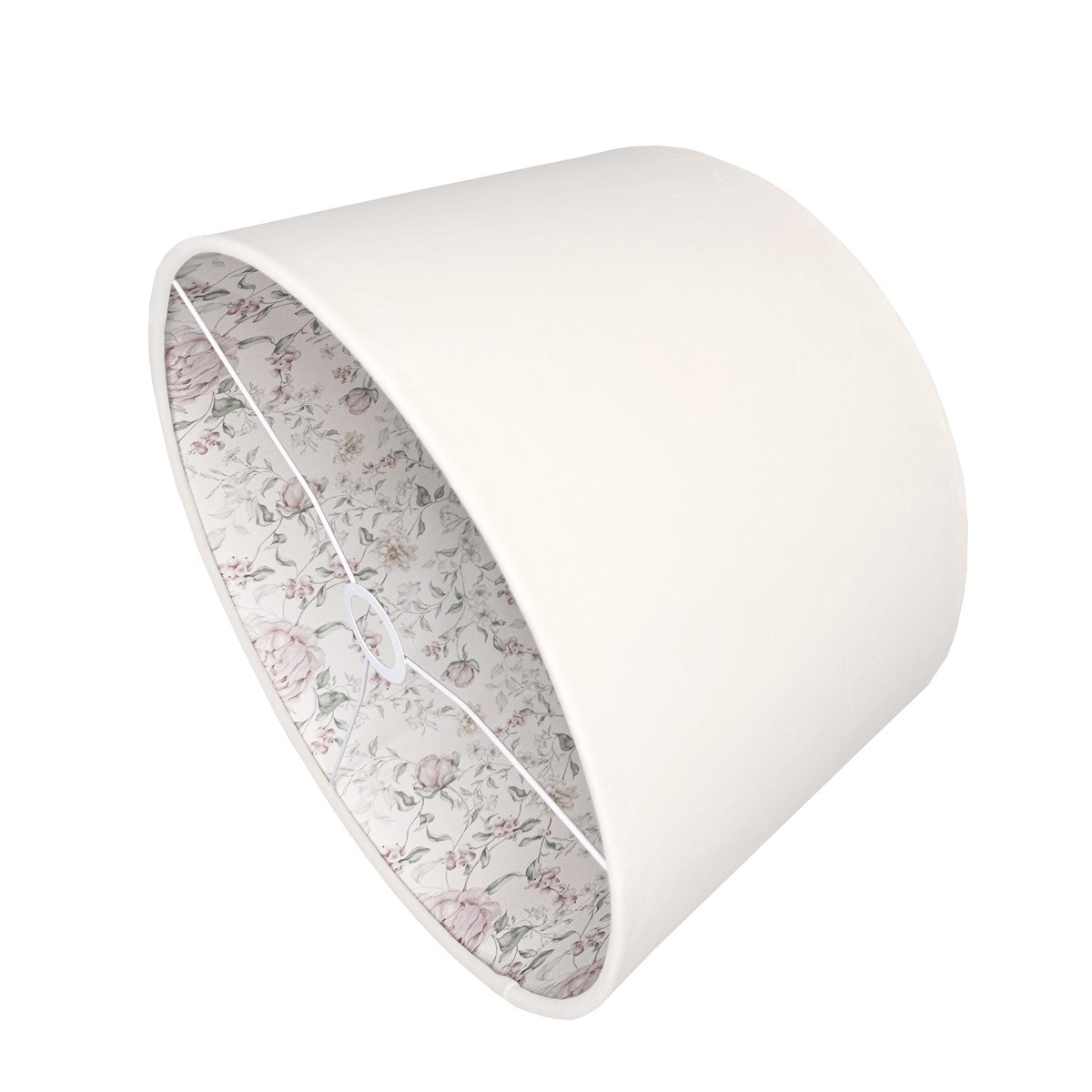 Z pozoru minimalistyczny, w praktyce niezwykle oryginalny, tak można opisać ten abażur z kremowego aksamitu, który łączy w sobie elegancję delikatnego w dotyku materiału premium z dekoracyjnym wnętrzem skrywającym romantyczny kwiatowy motyw. Gładka, aksamitna powierzchnia w odcieniu ciepłego kremu tworzy miękką fakturę, która doskonale odnajduje się we wnętrzach bazujących na jasnych, uniwersalnych kolorach. To dokładnie ten rodzaj klosza, który od razu zwraca uwagę jakością.
