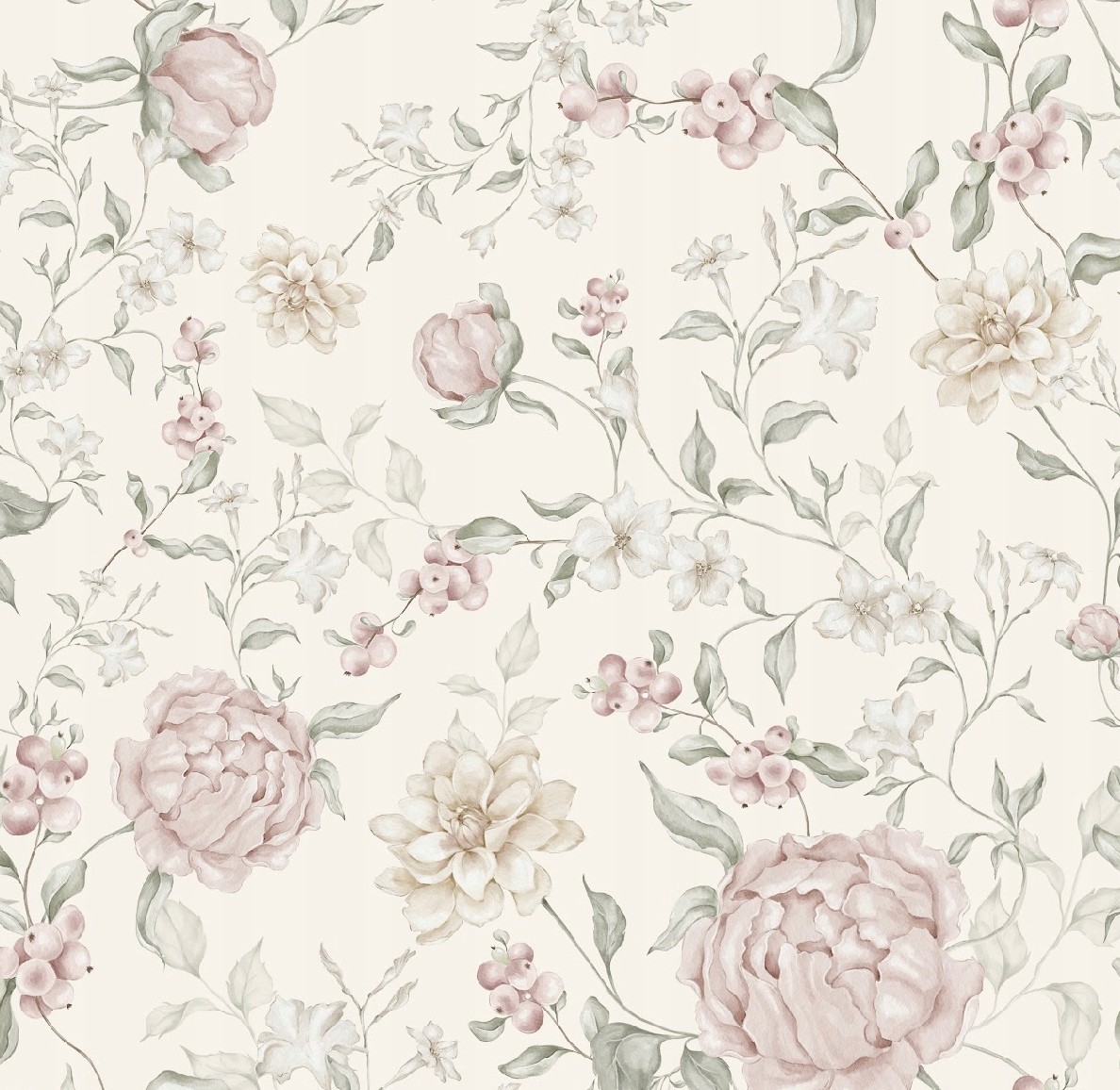 Zaglądając do środka, odkrywamy ozdobną tkaninę z pastelowymi kwiatami w kolorach jasnego różu i zieleni. Ten delikatny wzór sprawia, że po zapaleniu światła abażur zyskuje nowy wymiar, gdzie na zewnątrz rysują się delikatne cienie kwiatów. To subtelny zabieg wizualny, który od razu dodaje wnętrzu charakteru.