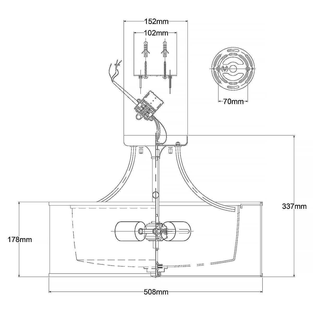 wysokość abażura: 17,8 cm; średnica abażura: 50,8 cm
