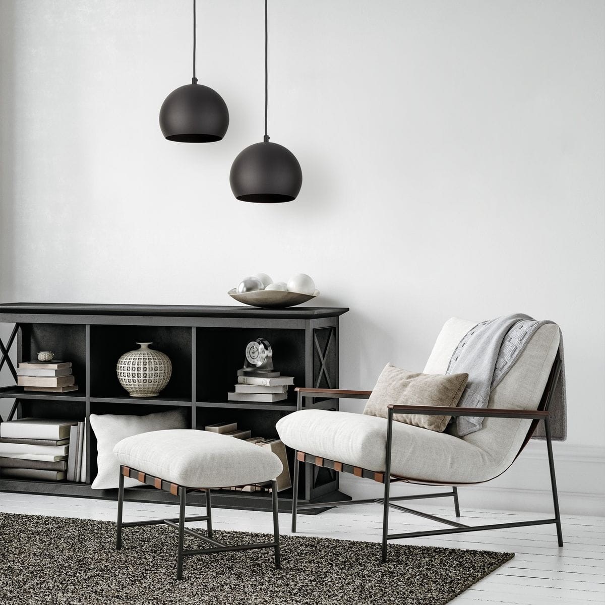 Lampa wisząca kula czarna do kuchni, dedykowana do minimalistycznych nowoczesnych wnętrz, lub surowych loftowych przestrzeni. Podkreśla styl pomieszczenia, a dzięki wyrazistemu kolorowi rzuca się w oczy. Lampę można skrócić na dowolną wysokość dopasowując ją do pomieszczenia.