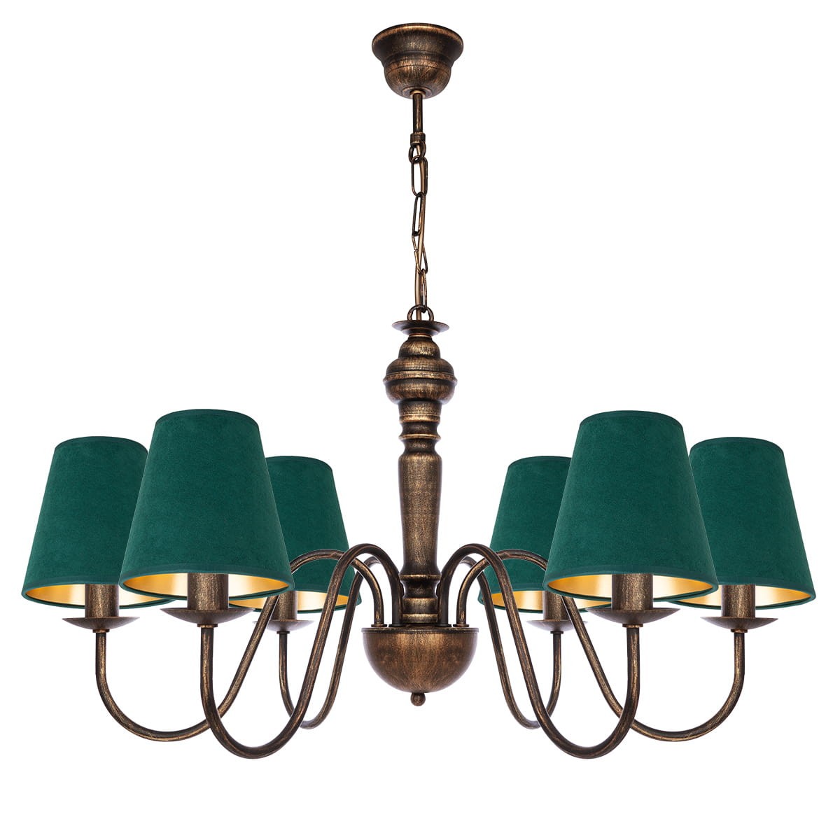 Lampa zielona o czarno-złotym stelażu GOLDSUN AB 1335G/24/54 6-ramienny