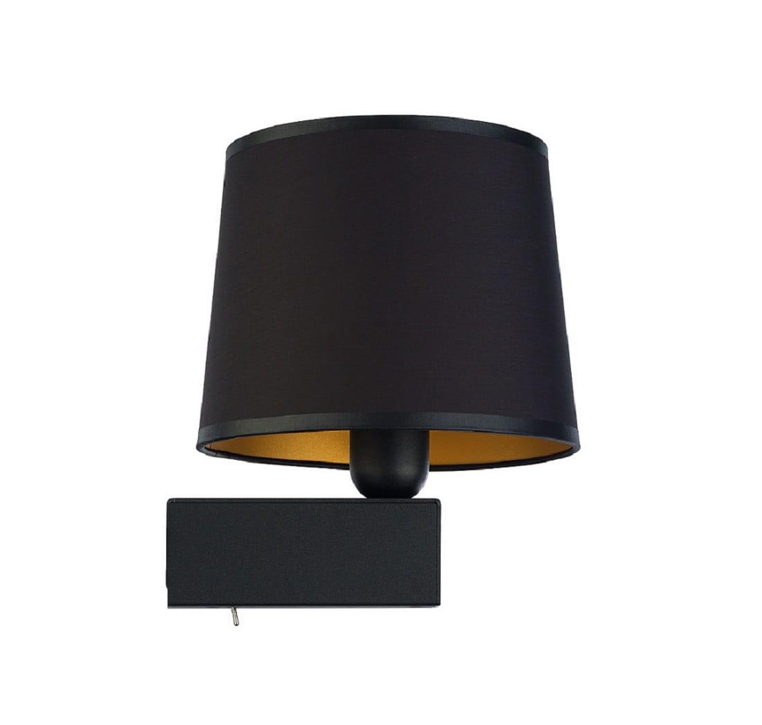 Luksusowa czarno-złota lampka. Piękna luksusowa lampka na ścianę w kolorze czarno-złotym pasująca do praktycznie każdej nowoczesnej jak i klasycznej sypialni czy salonu. Idealnie sprawdzi się podczas wieczornego czytania. Wykonana z najwyższej jakości materiałów.