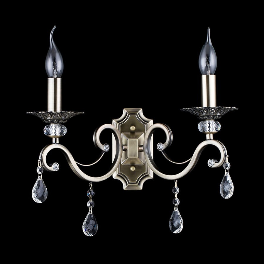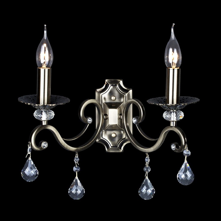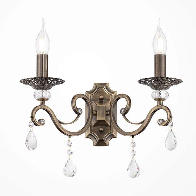 Luksusowy podwójny kinkiet mosiądz. Wspaniały kinkiet do salonu, zachwyca klasycznym kształtem, połączonym z dużą ilością ozdób- rzeźbień i kryształków. Lampa znakomicie prezentuje się w zestawieniu z żarówkami typu "płomyk". Kinkiet najwyższej jakości, znakomicie wykonany, od wiodącego niemieckiego producenta.