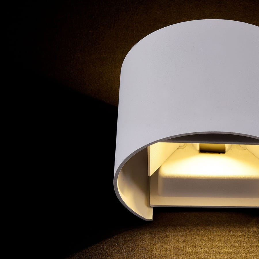 Minimalistyczny biały kinkiet zewnętrzny. Prosty kinkiet pasujący do nowoczesnych aranżacji. Lampę wyróżnia odporność na warunki pogodowe i korozję a także wysoka klasa szczelności IP54.