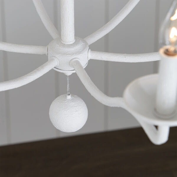 Minimalistyczny żyrandol biały świecznikowy, wzorowany na klasycznych modelach ale w bardzo nowoczesnym, wręcz dizajnerskim wydaniu, dzięki czemu doskonale sprawdzi się również w modernistycznych wnętrzach. Prosty, nieprzytłaczający stelaż o finezyjnie wygiętych ramionach zwraca uwagę jakością wykonania. Idealnie pasują do niego żarówki w kształcie płomyków.