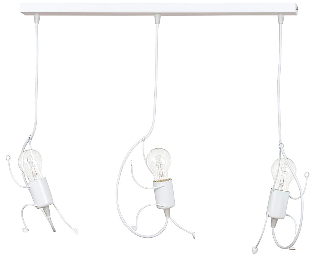 Nowoczesna biała lampa do pokoju młodzieżowego. Pomysłowa lampa potrójna z trzema "ludzikami" z pewnością spodoba się młodszym klientom.
