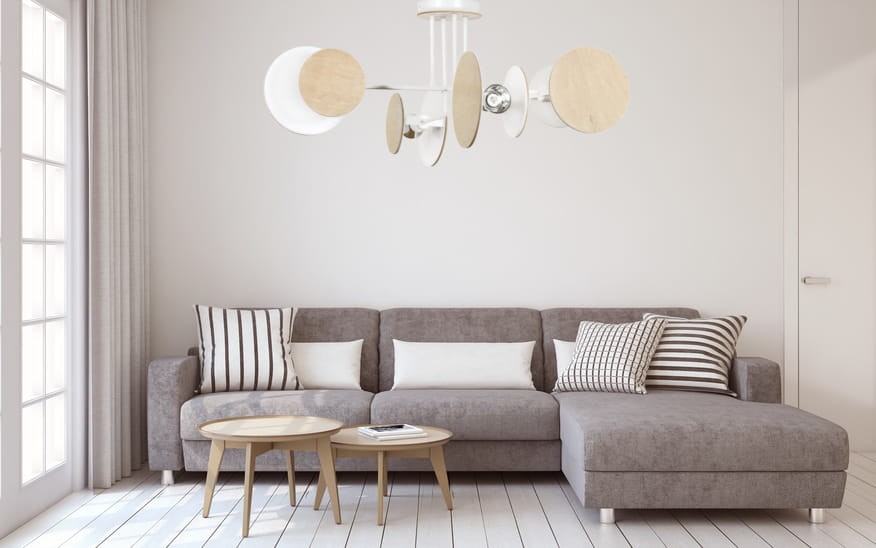 Nowoczesna lampa sufitowa w stylu skandynawskim. Niewątpliwe wrażenie robi geometryczny stelaż drewnianymi elementami. Ze względu na swoją niewielką wysokość model pasuje do niskich pomieszczeń. Wyprodukowano w Polsce.