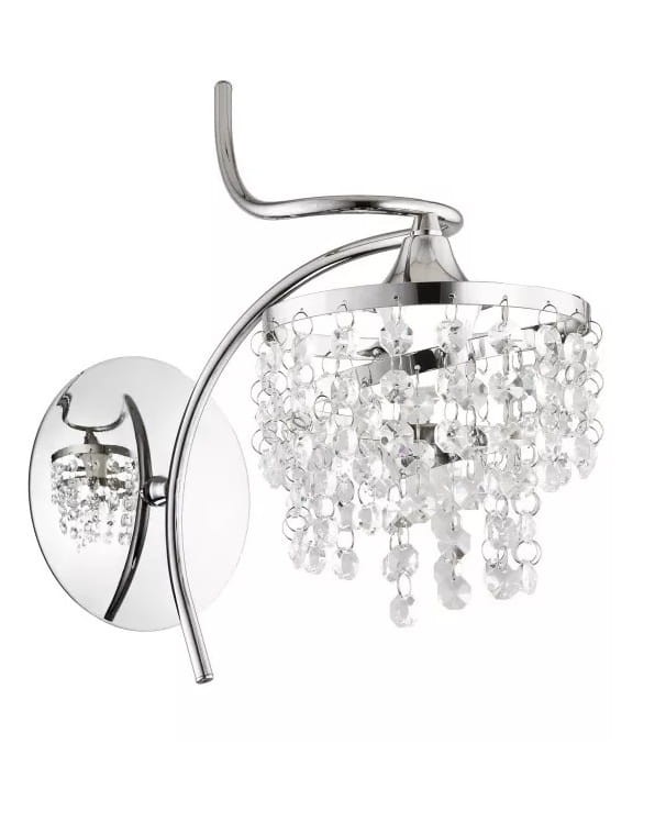 Nowoczesny kinkiet z kryształami, który znakomicie pasuje do żyrandoli KALEPA czy ROKS. Efektowna lampa na ścianę, która wniesie do wnętrza wspaniały blask. Kinkiet na oryginalnym stelażu w kolorze chromu ozdobiony dużą ilością kryształów dających piękny efekt rozproszenia światła.