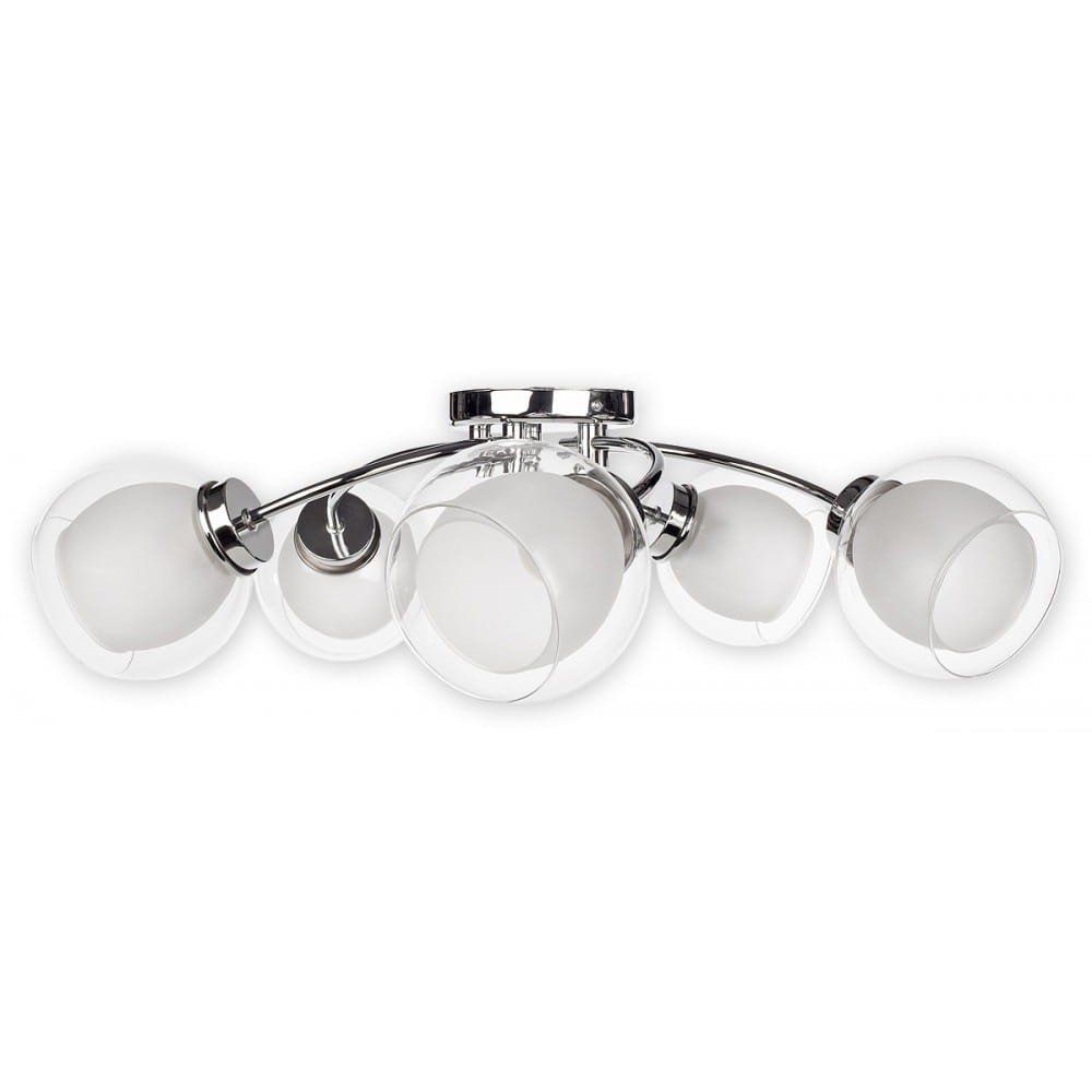 Chromowy nowoczesny plafon do sypialni lub niewielkiego salonu DEKY to model lampy, który świetnie prezentuje się w nowoczesnych wnętrzach. Wyróżnia się ciekawym, niepowtarzalnym wzornictwem, prosty srebrny stelaż oraz 5 szklanych kloszy tworzą bardzo nowoczesną kompozycję. Plafon wykonany niezwykle precyzyjnie.