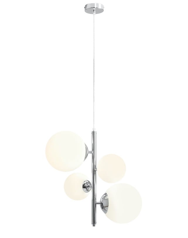 Nowoczesny zwis w kolorze chrom znakomicie sprawdzi się w modernistycznych salonach czy sypialniach w stylu glamour. Nasza lampa wisząca posiada aż 4 punkty świetlne, dzięki czemu doskonale oświetli większe powierzchnie. Całość lampy opiera się na metalowym stelażu w kolorze chromu, do którego przymocowane są kuliste klosze wykonane z matowego szkła. Seria lamp BELI dostępna jest w wielu wariantach kolorystycznych oraz różnych modelach.