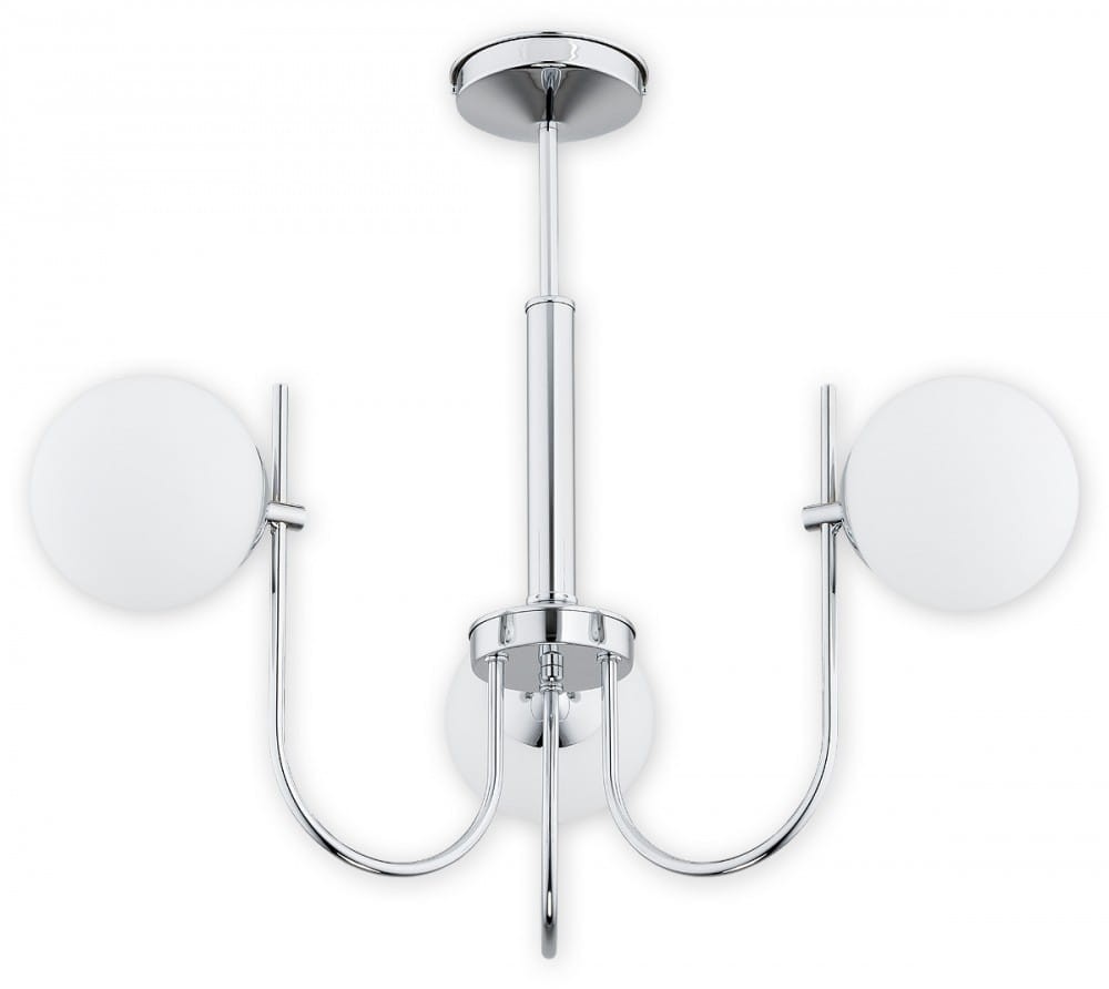 Nowoczesny żyrandol do salonu to model z rodziny APISO. Minimalistyczna chromowana konstrukcja pięknie współgra ze szklanymi kloszami w kolorze ponadczasowej bieli. Produkt polski.
