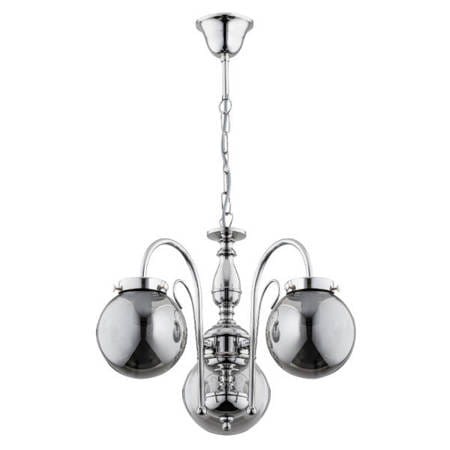 Nowoczesny żyrandol salonowy. Niebanalny w swojej formie chromowy żyrandol ze szklanymi oryginalnymi kloszami idealnie wpasuje się w nowoczesny wystrój wnętrz. Odpowiednio doświetli pomieszczenie. Produkt polski.