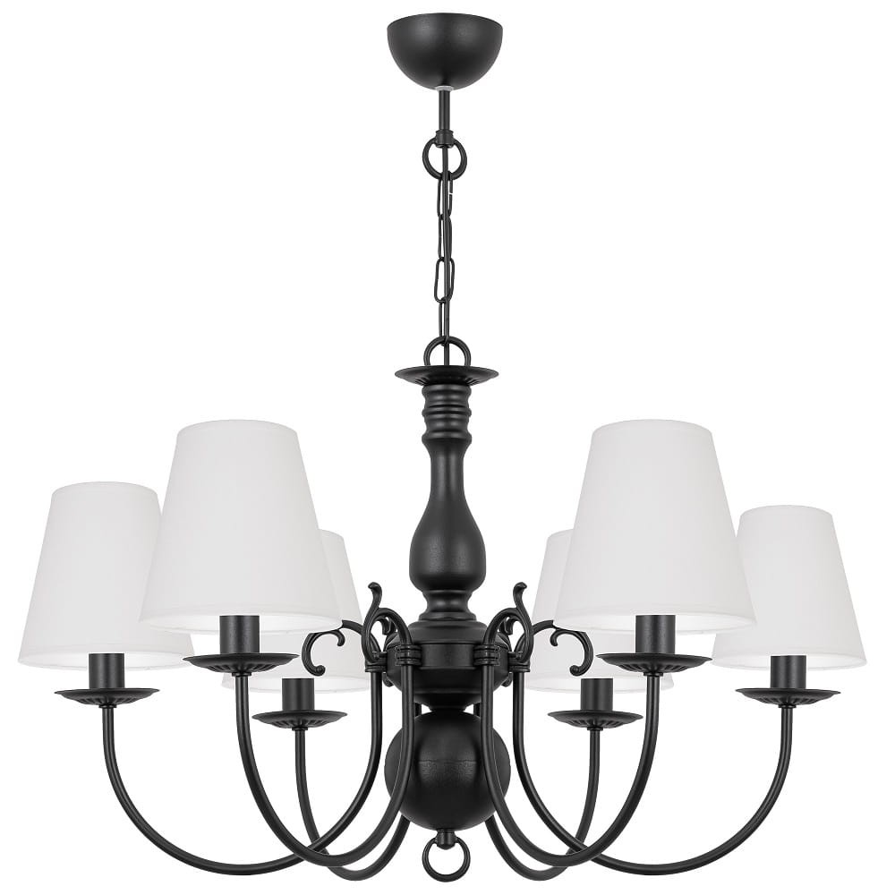 Oryginalna czarna lampa wisząca do pokoju MARIA CZARNA. Ta stylowa duża lampa wisząca będzie piękną ozdobą każdego pokoju, salonu, sypialni i jadalni. Lampa w całości wyprodukowana w Polsce z polskich komponentów co niewątpliwie jest jej dużą zaletą. Prezentowany model jest na czarnym stelażu z pięknymi białymi abażurami, które nadają całości klasycznej nuty.