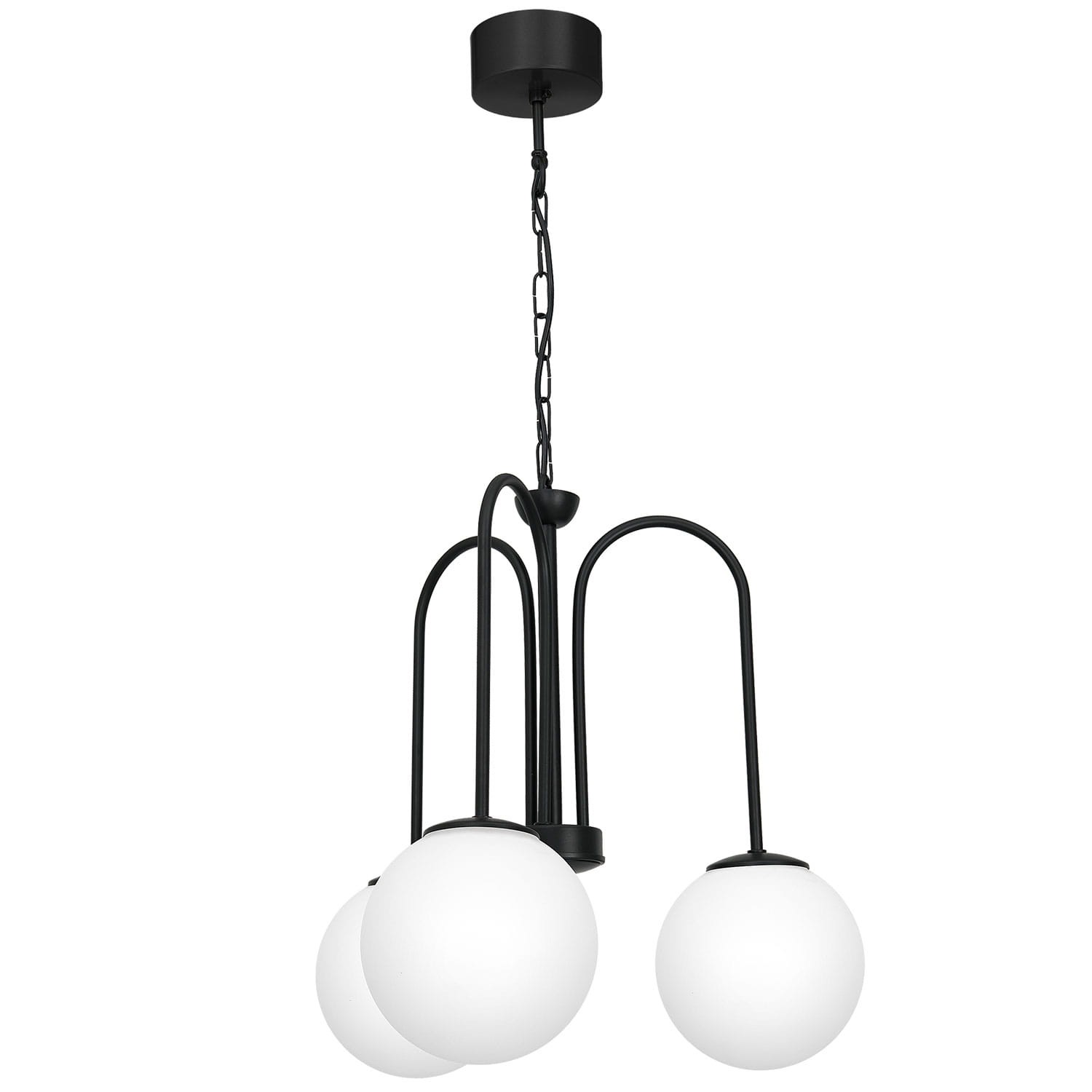 Oryginalna czarna lampa z kloszami. Oryginalna ciekawie zaprojektowana lampa wisząca. Na czarnej metalowej konstrukcji w zestawie z uniwersalnymi białymi kloszami świetnie sprawdzi się w takich wnętrzach jak salon, jadalnia czy sypialnia. Produkt polski.