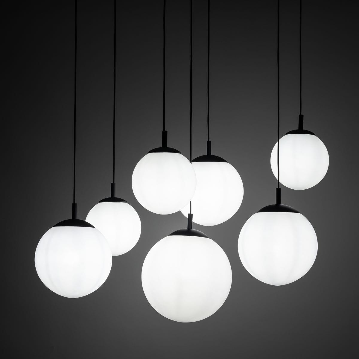 | Materiał | metal w kolorze czarnym, białe szklane klosze |