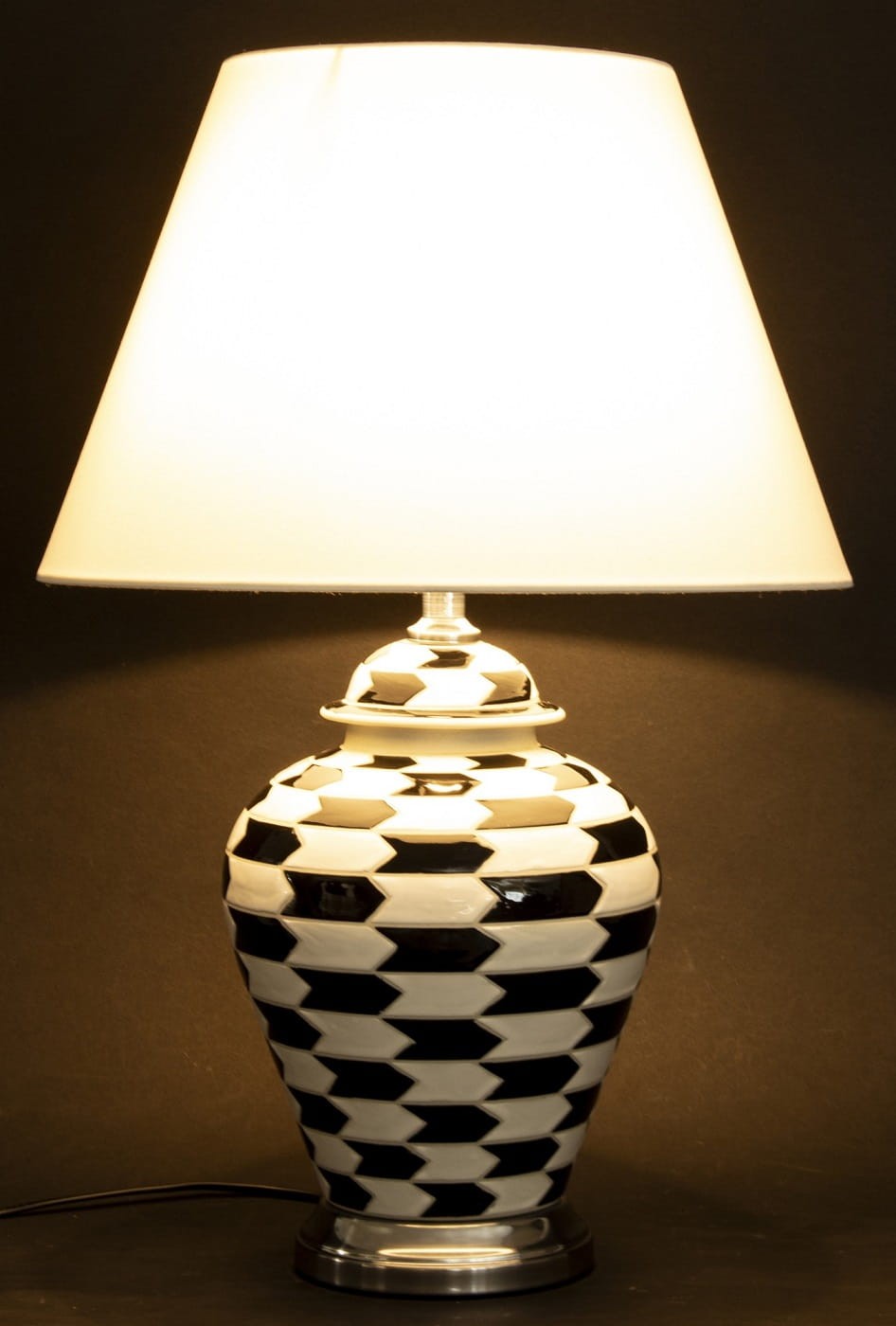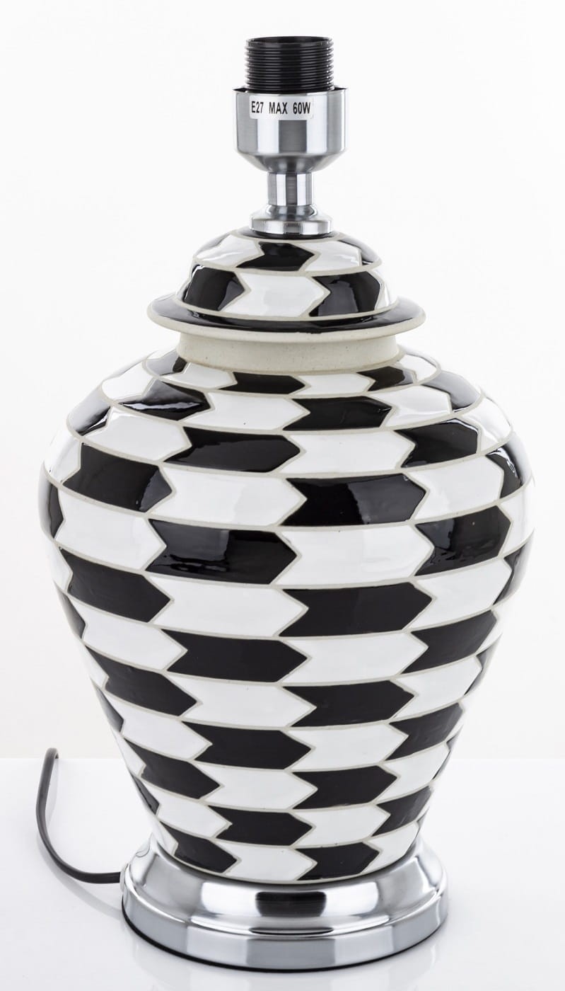 Oryginalna lampka ceramiczna z printem MOZAIK z pięknym motywem czarno-białym na podstawie będzie idealnym dodatkiem oświetleniowym a zarazem niepowtarzalną ozdobą każdego stylowego pomieszczenia. Zwraca uwagę swoją oryginalnością.