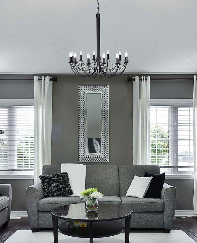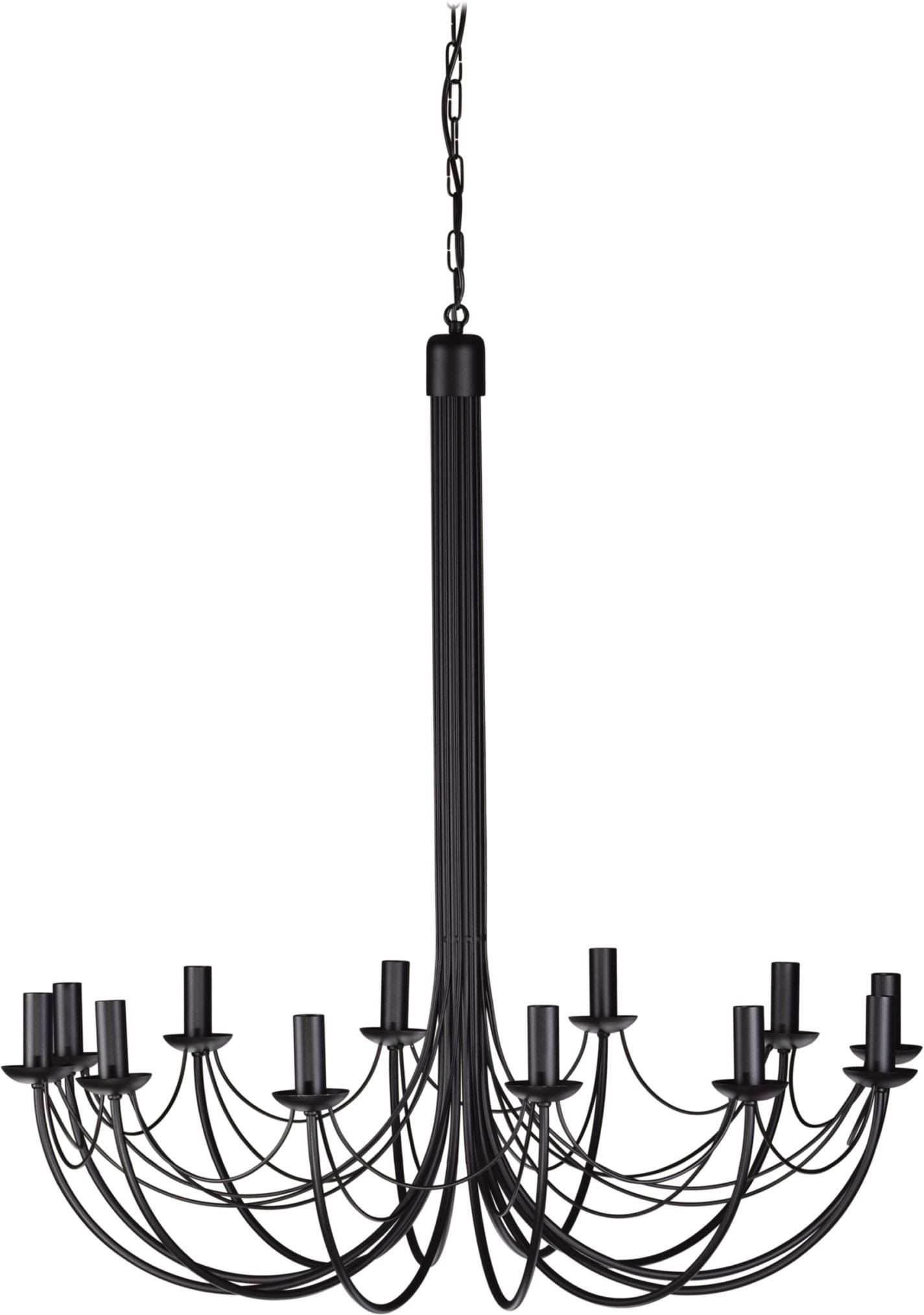 Oryginalny duży żyrandol do salonu lub restauracji. Duża lampa wisząca w wyrazistym czarnym kolorze zachwyca kształtem i starannością wykonania. Żyrandol wspaniale prezentuje się w połączeniu z ciemnymi i wyrazistymi dodatkami. Idealny do przestronnego salonu jak również do restauracji, hotelu czy kościoła. Ponadczasowa forma.