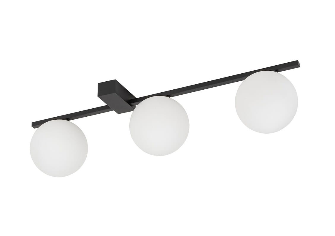 Oryginalny potrójny czarny kinkiet. Oryginalny, pięknie zaprojektowany potrójny kinkiet czarny w zestawie z białymi szklanymi kloszami w kształcie kuli będzie niepowtarzalnym dodatkiem w każdej stylowej sypialni i nie tylko. Wprowadzi subtelne, delikatne światło.