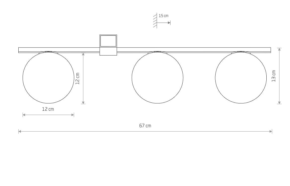 | Szerokość | szerokość 67 cm, odległość od ściany 15 cm, średnica klosza 12 cm |