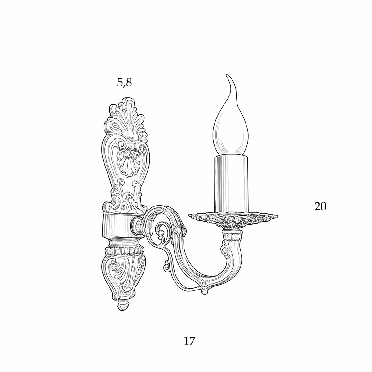Ozdobny czarny kinkiet płomyk. Szalenie elegancki kinkiet do sypialni utrzymany w klasycznej stylistyce. Kinkiet wyróżnia się dekoracyjnym kształtem, szczególną uwagę zwraca ozdobny element przy ścianie połączony z delikatnym ramieniem. Klasyczna forma naszego kinkietu nawiązuje do dawnego oświetlenia dworków i pałaców, bogato zdobionego, o przemyślanej formie. Stylowy czarny kinkiet najwyższej jakości, wykonany w Polsce.