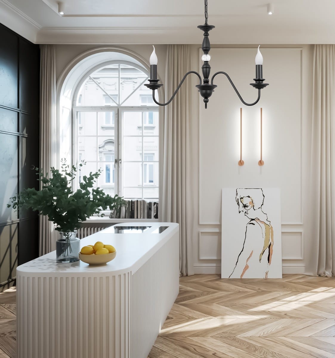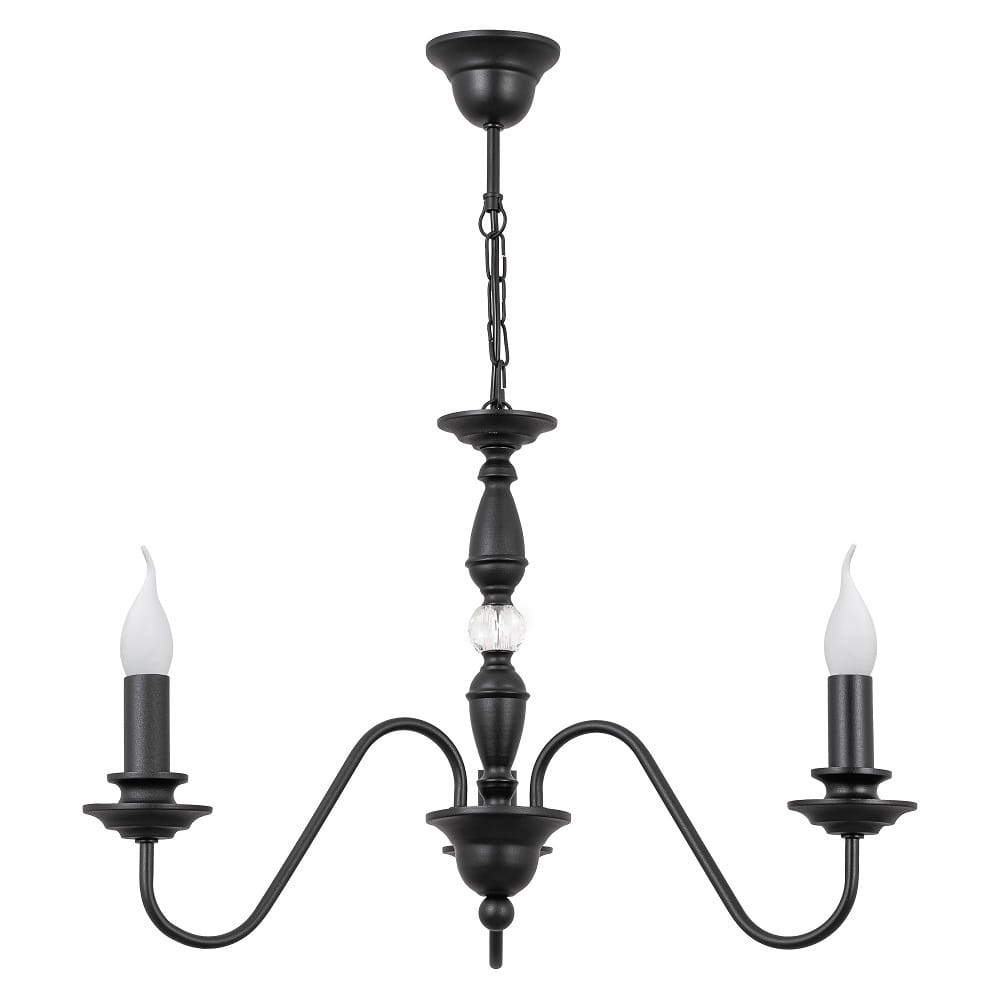 Ozdobny czarny żyrandol KRISTAL CLASSIC. Piękny żyrandol pasujący do niewielkiego pokoju lub romantycznej sypialni. Będzie pasować do stylowych mebli i nie tylko. Klasyczny model. Lampa dodatkowo została ozdobiona dużym kryształem, który odbija światło.