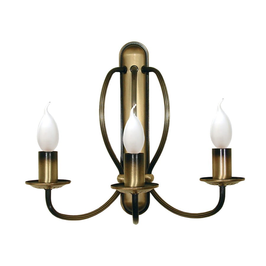 Patynowany kinkiet świecznikowy do salonu, jadalni lub sypialni. Model nawiązuje stylem do dawnych wnętrz zamkowych, dlatego dobrze będzie się komponował z postarzanymi meblami, antykami czy cegłą.
