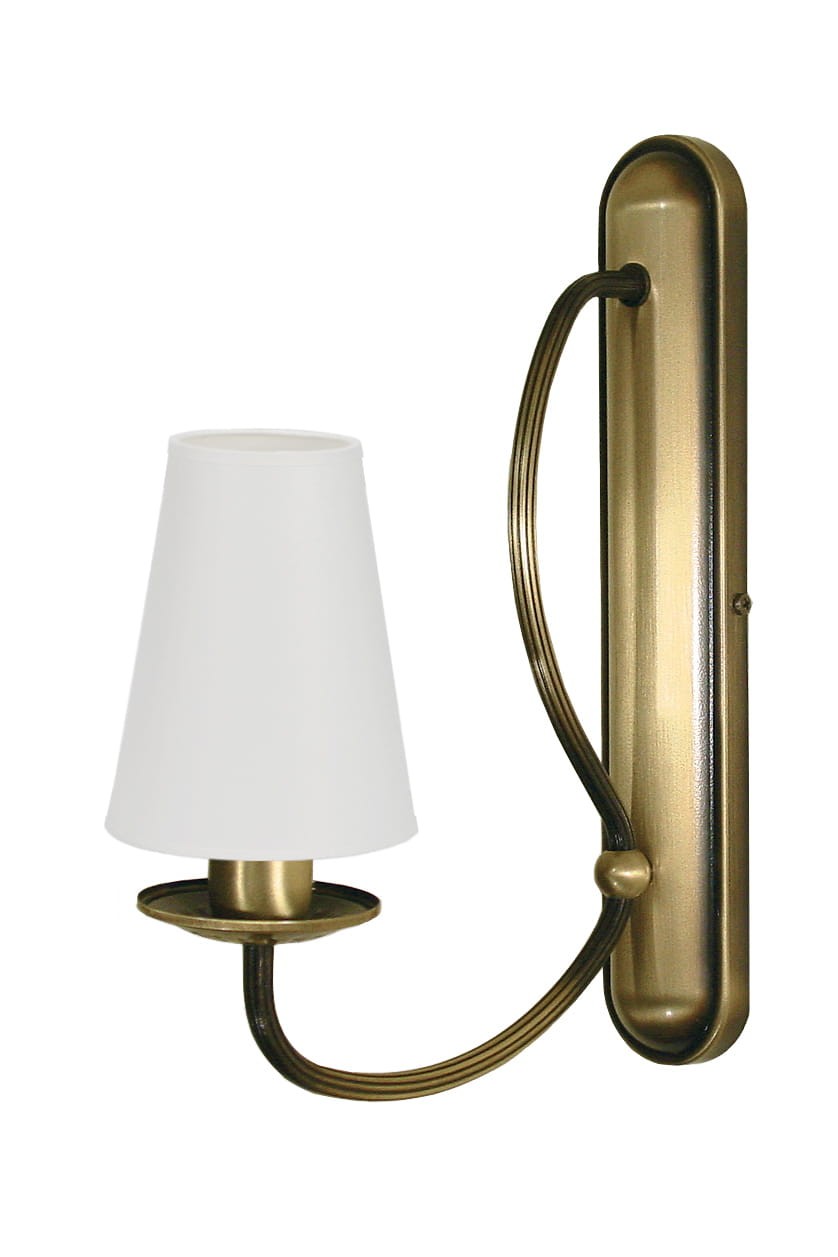 Patynowany kinkiet z abażurem. Lampa ścienna w klasycznym stylu dedykowana do wnętrz o tradycyjnym wystroju. Kinkiet KORNE zwraca uwagę ciekawym kształtem i pięknym kolorem patynowanego złota. Na zamówienie mogą Państwo zamienić abażur na dowolny kolor z naszej palety.