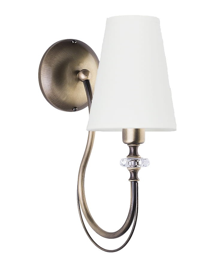 Patynowany kinkiet z abażurem w cieszącym się dużą popularnością stylu klasycznym. Ten urokliwy kinkiet w odcieniu mosiądzu idealnie pasuje do naszych żyrandoli z serii MELENA- razem tworzą wyjątkowo elegancką i stylową całość.