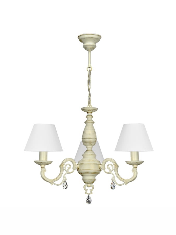 Patynowany żyrandol z kryształami do sypialni. Efektowna lampa wisząca ze zgrabnymi abażurkami z białej tkaniny, dodatkowo ozdobiony kryształkami. Żyrandol VIOLA to świetna propozycja do klasycznych aranżacji- kształtem przypomina dawne lampy pałacowe w uwspółcześnionej, wolnej od przesady wersji. Lampa świetnie komponuje się ze stylizowanymi meblami, kwiatowymi obiciami.