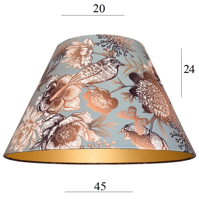 Piękny abażur do lampy z weluru ze złotym wnętrzem 9S E27 FLOWERS welur 20/45 wys 24 stożek