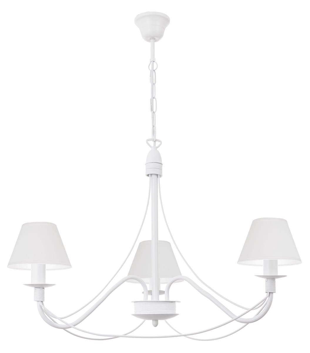 Piękny biały żyrandol z abażurkami HORTENSJA 1S 382-3/BIA/01 3-płomienny