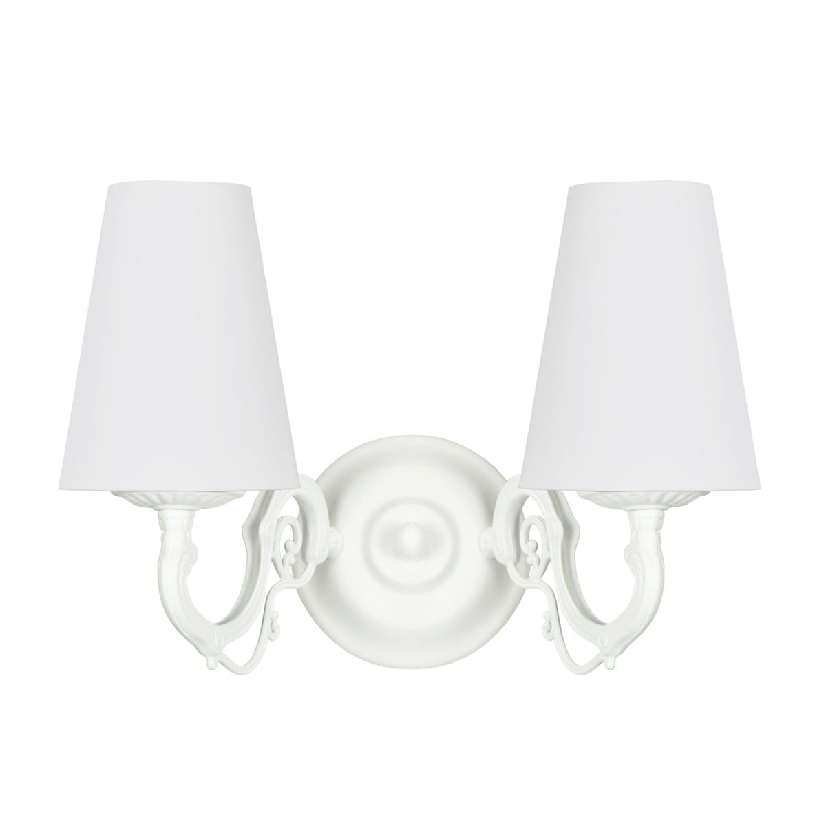 Podwójny biały kinkiet na ozdobnym stelażu. Wspaniały kinkiet do sypialni czy salonu, będzie nie tylko praktycznym dodatkowym oświetleniem ale też idealnie podkreśli wystrój wnętrza i doda mu szyku. Efektowny kinkiet z serii VIOLA z pewnością zwróci uwagę miłośników klasycznego oświetlenia, w jasnych aranżacjach prezentuje się zachwycająco.