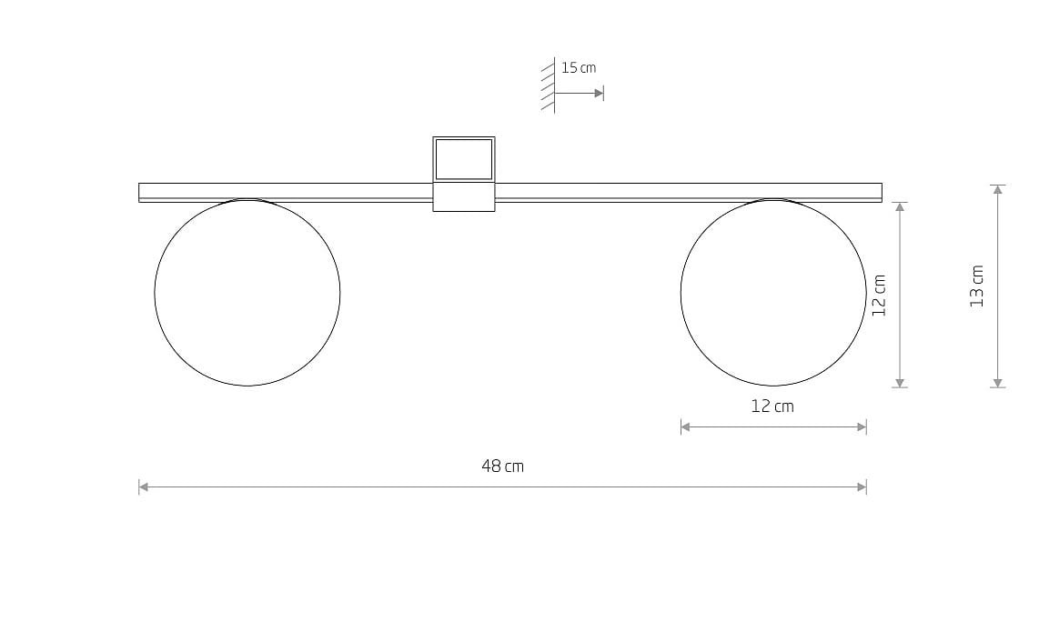 | Szerokość | szerokość 48 cm, odległość od ściany 15 cm, średnica klosza 12 cm |