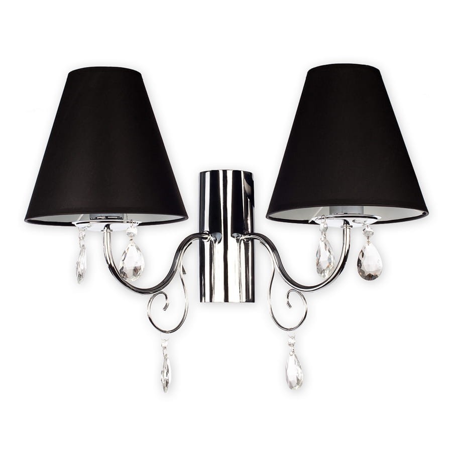 Szykowny podwójny kinkiet z abażurami i drobnymi kryształkami. Model zachwyca swoim eleganckim i zarazem prostym wzornictwem nawiązującym do stylu klasycznego bądź francuskiego.