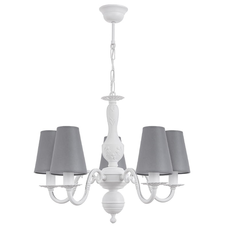 Prowansalski żyrandol z szarymi abażurkami LALKA O3045 W5 BIA/2S/08/Le 5-ramienny