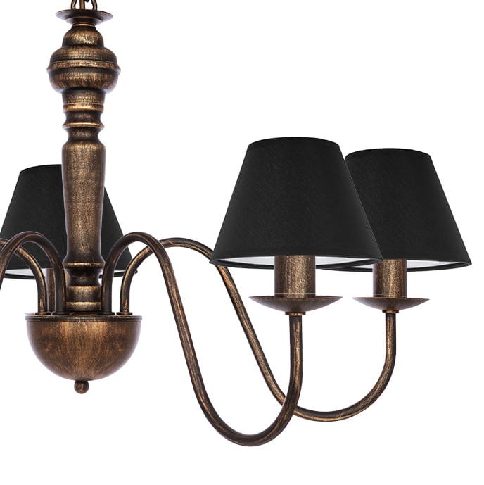 Staroświecki żyrandol czarno-złoty GOLDSUN 1S 1336G/24/14 5-płomienny