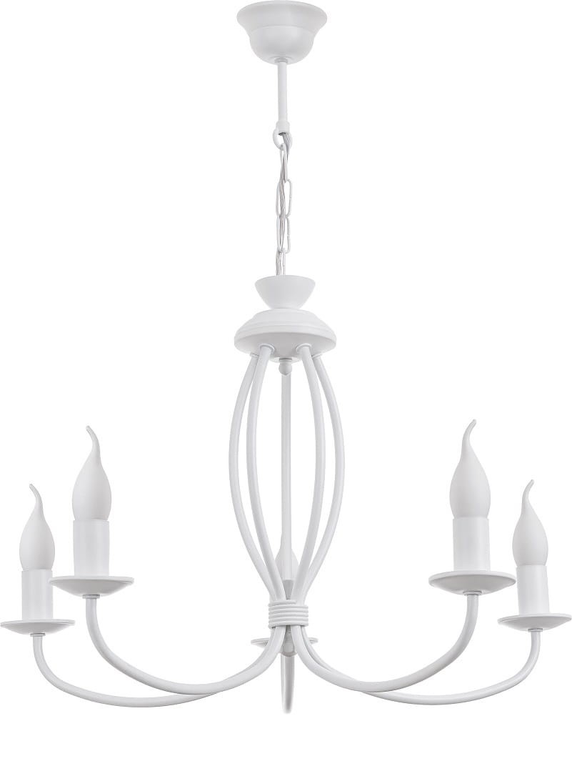 Stylowy biały żyrandol 5-płomienny. Pełen wdzięku i bardzo prosty żyrandol do pokoju. Ta piękna lampa zwraca uwagę nie tylko prostotą ale i elegancją.