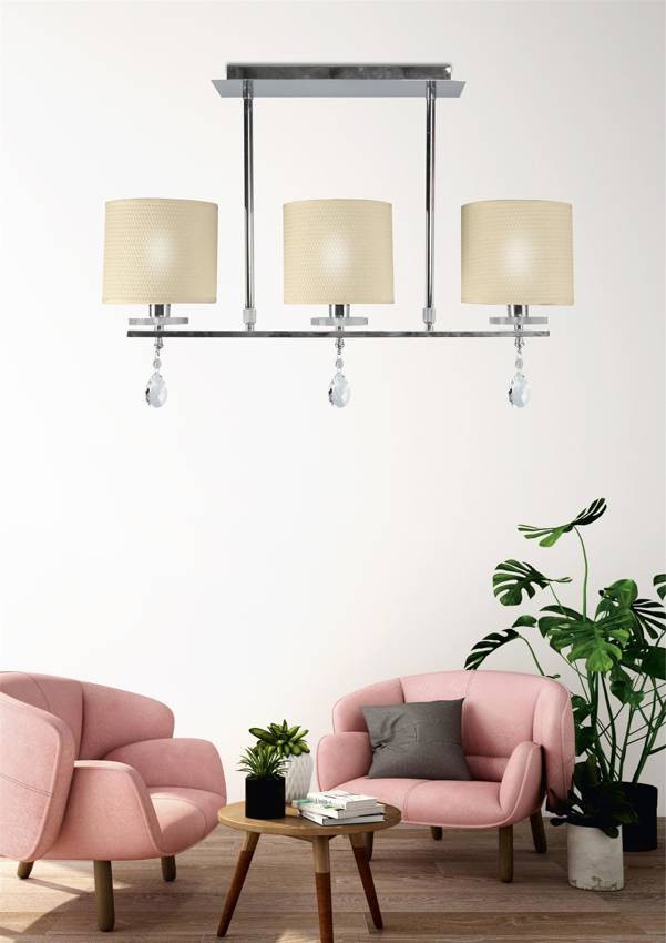 | Materiał | metal kolor CHROM, abażury w kolorze KREMOWYM, kryształy |