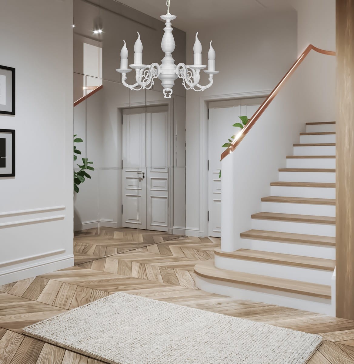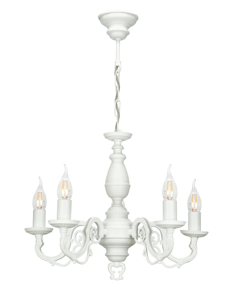 Model VIOLA to idealny żyrandol do sypialni lub salonu, który docenią miłośnicy klasycznej stylistyki. Biała lampa świetnie komponuje się z jasnym wystrojem wnętrz, jest wymarzonym dodatkiem do modnych aranżacji prowansalskich czy angielskich.