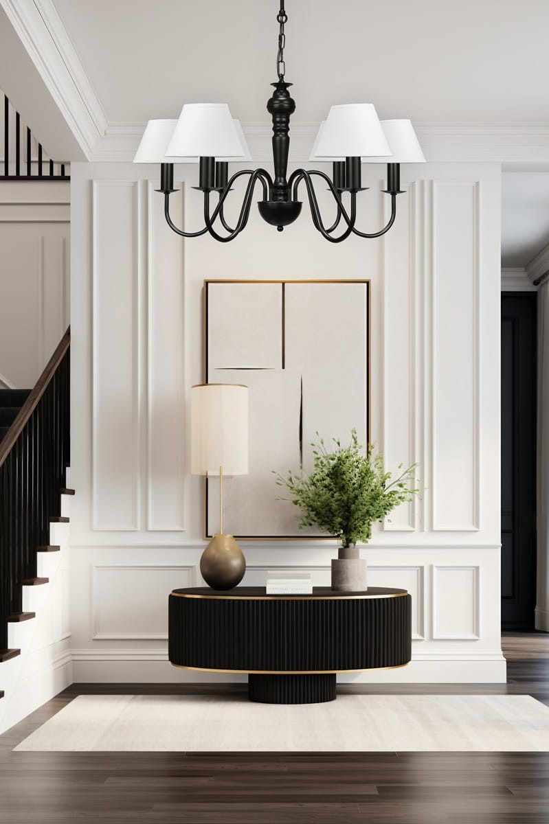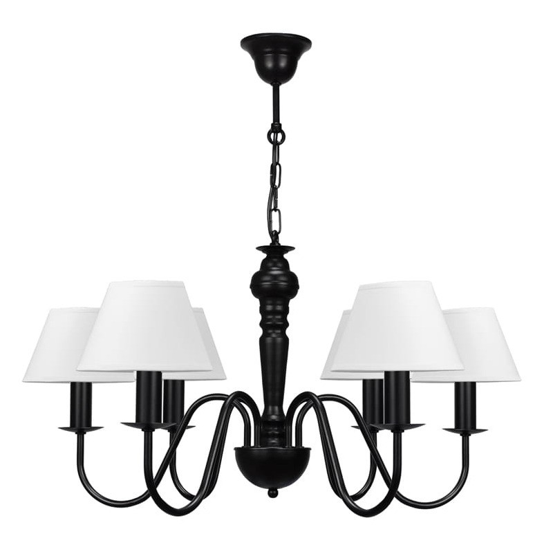 Stylowy czarny żyrandol 6-ramienny to jedna z naszych najnowszych propozycji do salonów, jadalni i innych przestronnych wnętrz. Połączenie czarnego stelaża i białych abażurów daje wrażenie elegancji i ponadczasowego szyku. Żyrandol GOLDSUN znajdą Państwo wyłącznie w naszej ofercie. Lampa polskiej produkcji, najwyższej jakości.