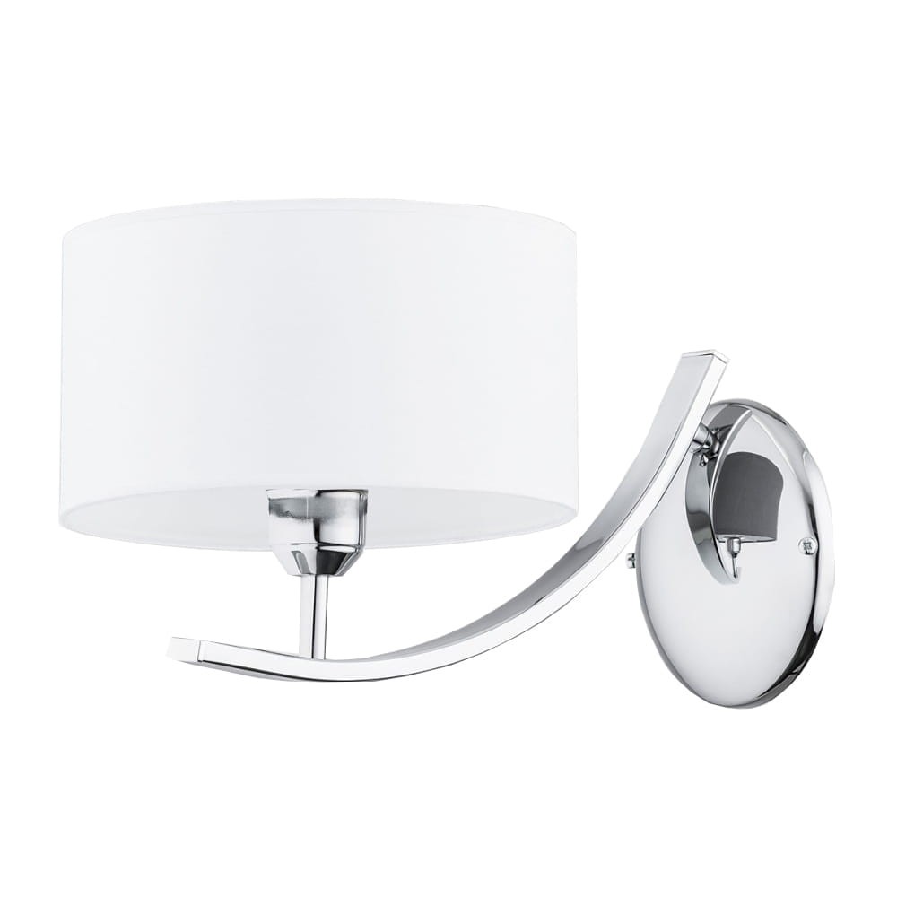 Stylowy kinkiet do sypialni to model, który świetnie prezentuje się w eleganckich wnętrzach. Tkaninowy abażur w białym kolorze ociepla całość, i wprowadza subtelny nastrój.