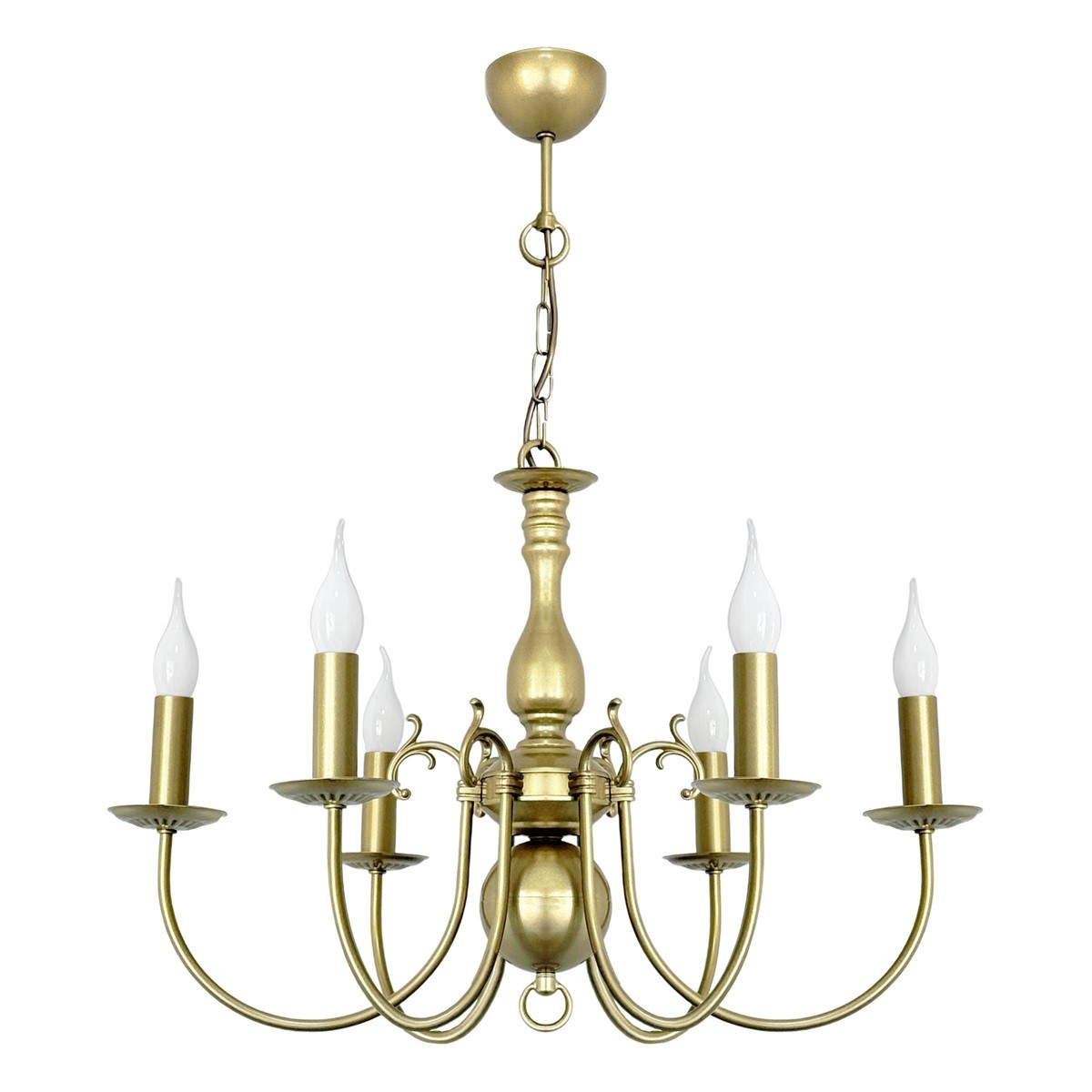 Stylowy złoty żyrandol 6-płomienny do salonu MARIA ZŁOTA CLASSIC z sześcioma punktami świetlnymi. Ten niezwykły żyrandol będzie ozdobą każdego eleganckiego salonu. Piękna linia lampy sprawia, że jest on wyjątkowy, nawiązuje do stylu starych przedwojennych lamp. Jego atutem jest fakt, iż został w całości wyprodukowany w Polsce, z dbałością o każdy najmniejszy szczegół. Teraz dostępny również w nowym, pięknym kolorze półmatowego złota.