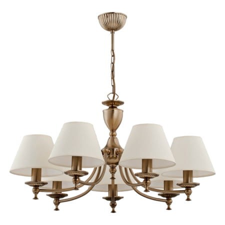 Stylowy żyrandol z abażurami do salonu. Unikatowy żyrandol w pięknym klasycznym wydaniu, świetnie sprawdzi się jako główne oświetlenie w tradycyjnym wnętrzu w domu i nie tylko. Uroku dodają ponadczasowe jasne abażurki. Wysoka jakość od polskiego producenta.